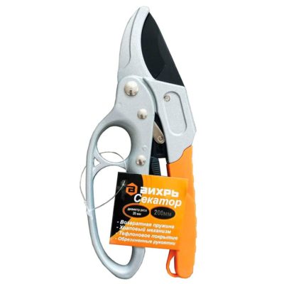 Секатор ВИХРЬ 200мм, возвратная пружина, храповый механизм, тефлон. покрытие