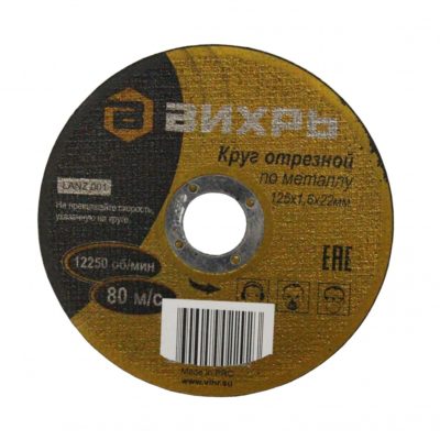 Круг отрезной по металлу ВИХРЬ 125х2,0х22 мм