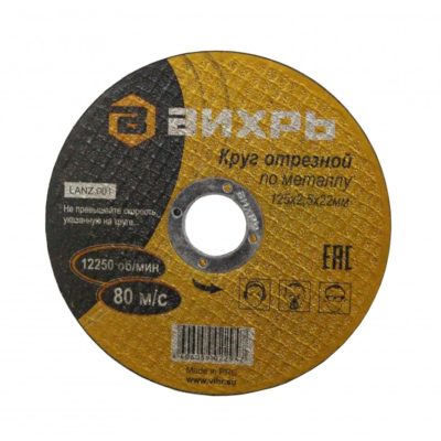Круг отрезной по металлу ВИХРЬ 125х2,5х22 мм