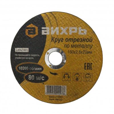 Круг отрезной по металлу ВИХРЬ 150х2,5х22 мм