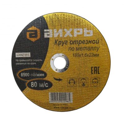 Круг отрезной по металлу ВИХРЬ 180х1,6х22 мм
