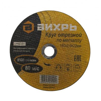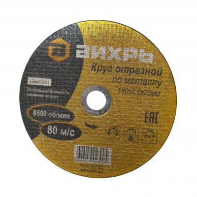 Круг отрезной по металлу ВИХРЬ 180х2,5х22 мм