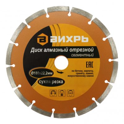 Диск алмазный отрезной ВИХРЬ 180х22,2 мм