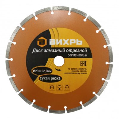 Диск алмазный отрезной ВИХРЬ 230х22,2 мм