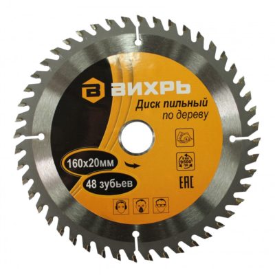 Диск пильный по дереву ВИХРЬ 160х20мм, 48 зубьев
